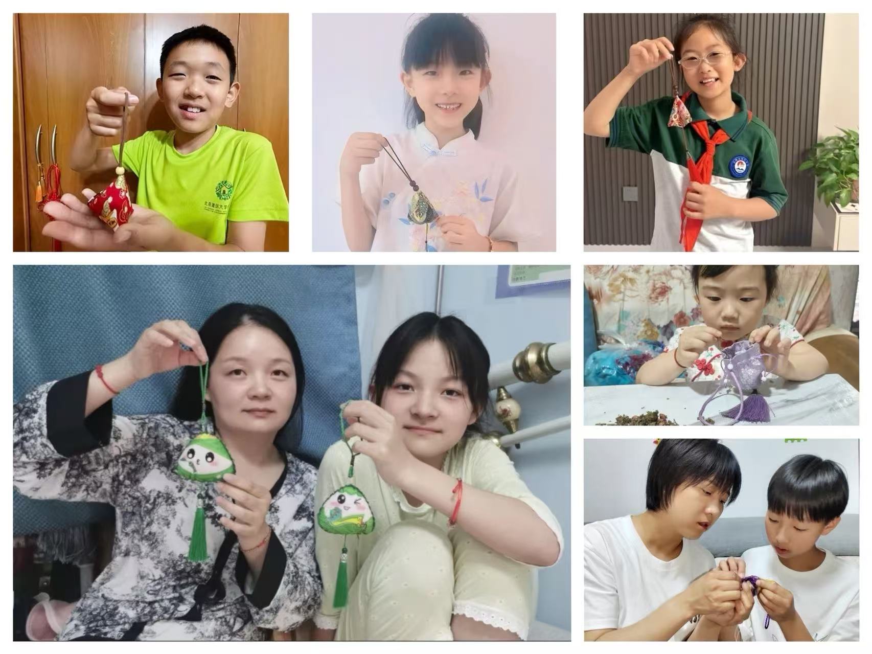 活动共设置三大环节。“绘梦端午·童心飞扬”中,孩子们以水彩、彩铅为笔,围绕端午习俗、六一欢乐主题自由创作,勾勒心中节日图景,在一笔一画的童真勾勒中传承文化薪火。“香囊传情·巧手制香”里,亲子共同挑选香料,穿针引线缝制香囊,传承传统技艺,寄托安康祝福,在一针一线的亲子协作中延续匠心精神。“粽享欢乐·亲子‘食’光”时,家长与孩子协作包粽,折叶、填米、扎绳,让传统美食制作成为温馨亲子课堂,在一叶一粽的温情包裹中厚植家国情怀。