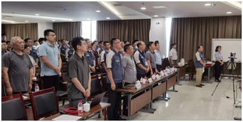 随后,大会进行第二项,重温入党誓词,党总支组织委员王志强带领全体党员面向党旗,高举右拳,庄严宣誓,重温入党誓词,大家神情庄重、声音铿锵。与会党员纷纷表示,通过重温入党誓词,深刻领悟作为一名共产党员的责任感和使命感。在今后工作生活中,会不断提高自身修养,牢记自己的庄严承诺,以实际行动恪守对党的忠诚,以积极进取的心态和创先争优的精神践行入党誓词,立足岗位做贡献,勇于担当敢作为,发挥先锋模范作用!