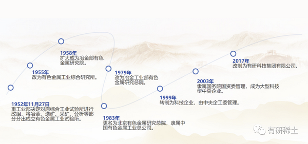 有研稀土新材料股份有限公司(简称有研稀土)是2001年由有研科技集团有限公司(原北京有色金属研究总院)作为主发起人对稀土材料国家工程研究中心进行改制而成立的股份制公司,是高新技术企业。其前身成立于1958年,是我国最早从事稀土研究开发的单位之一, 也是我国稀土工业技术的发源地之一。