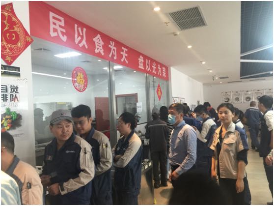 刘慧舟书记在食堂现场监督检查员工就餐情况