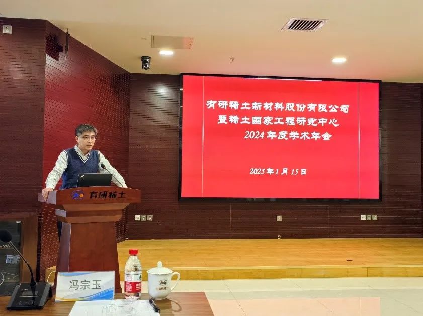 冯宗玉致辞,讲述了有研稀土的创新发展历程、行业贡献,重点介绍了2024年度有研稀土在科技创新方面取得的主要成绩。他表示,举办学术交流会是推动公司科技创新事业发展的一项重要措施,对公司的科技创新成果的取得和科技人才队伍培养起到了重要作用。