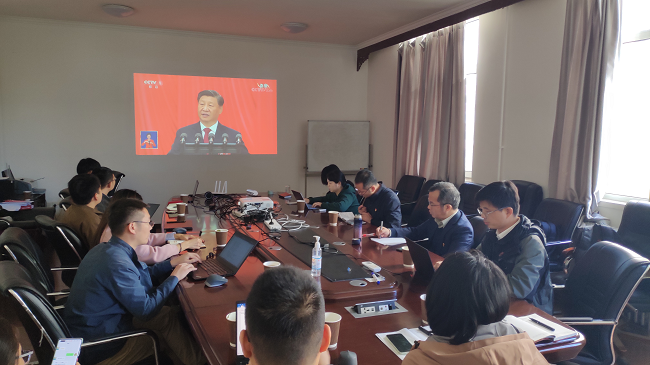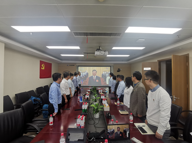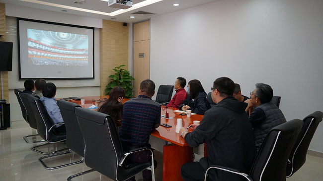 随着大会开幕,收看直播的同志们全体起立,高唱国歌。习近平总书记的报告慷慨激昂,广大干部职工认真聆听,当习近平总书记报告结束时,同志们也随着现场代表们一起长时间热烈鼓掌。