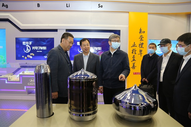 签约仪式前,袁洁一行参观了国家新材料测试评价平台主中心、有色金属材料制备加工国家重点实验室、智能传感功能材料国家重点实验室、国家动力电池创新中心、有研集团展室并进行了座谈交流。