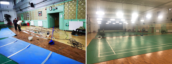 有研集团工会协调保障部开展俱乐部提升维护工作,全面翻修羽毛球场地板,提高了场地的安全性和专业性;对场地内的风扇电路进行全面改造,全部改为按键式开关,使广大职工在炎热天气下能够更加舒适的在场地内活动;改造安装电动窗帘、更换羽毛球场地专用排灯,改造后的场地光照科学合理,得到广大职工群众的一致好评。