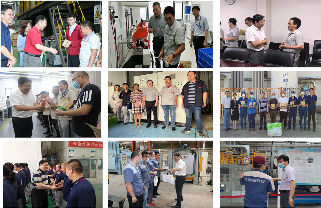 近日,集团全体领导班子成员分别深入怀柔、昌平、顺义、燕郊、廊坊等园区,走进车间和班组,看望慰问高温作业一线员工和因病以及近期因水灾等致困的困难职工,给他们送去慰问品和慰问金。领导与职工们亲切交谈,仔细询问生产、生活情况和身体状况,对奋斗在一线的职工表示感谢,嘱咐现场人员注意防暑降温,加强疫情期间的自身防护意识,希望困难职工遇到困难时想到组织,同时鼓励他们坚定信心,积极面对。