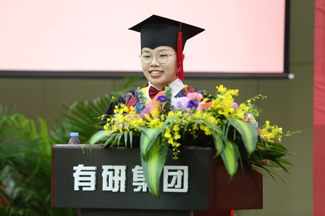博士学位获得者高彤宇代表毕业生发言,她分享了在有研总院的成长经历,代表毕业生对有研总院的悉心培养表达了感谢。她代表毕业生庄严承诺,将秉承有研人胸怀国家的初心和艰苦奋斗的品质,在新的人生阶段,用行动和奋斗书写无愧于有研人的华美篇章。