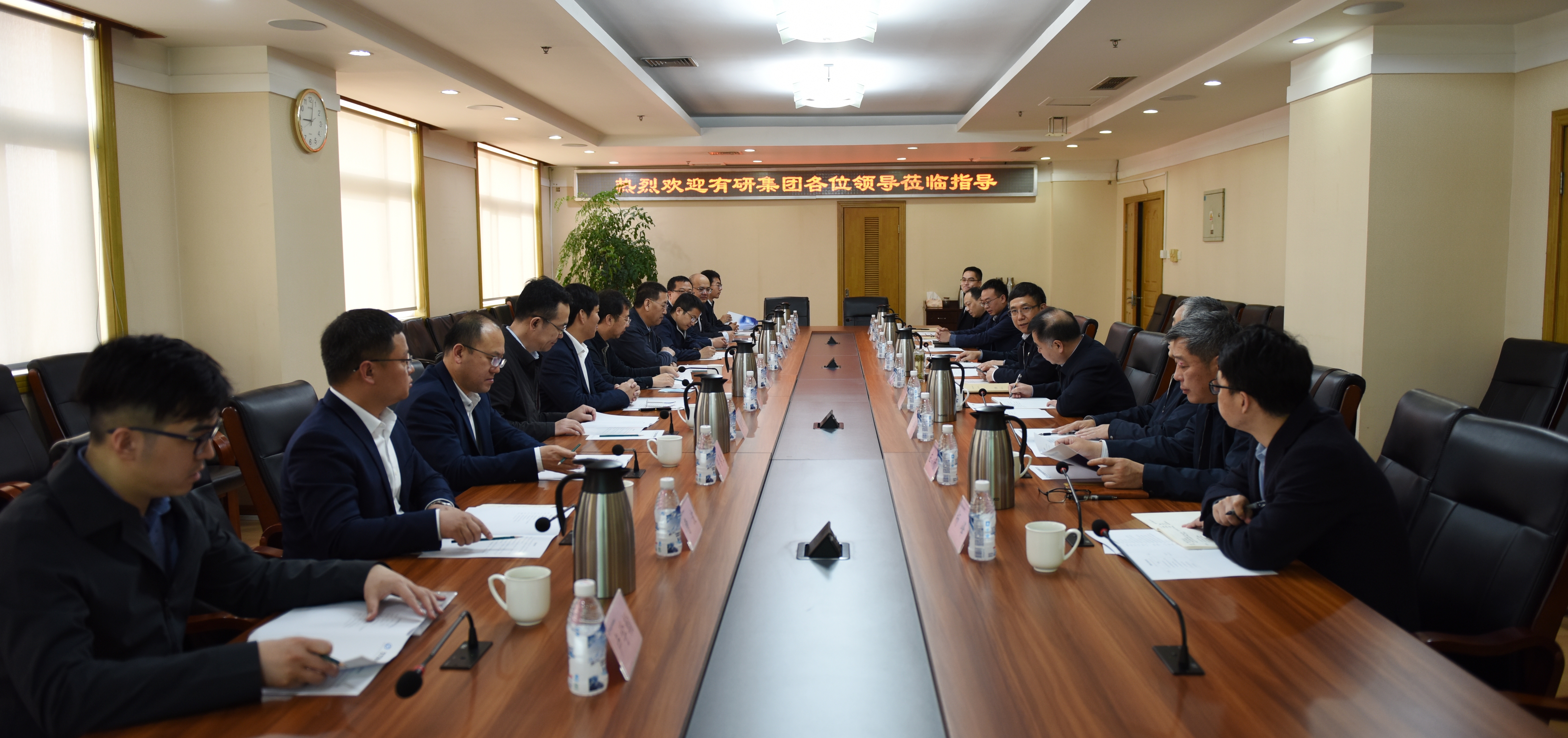 4月12日,有研集团党委书记、董事长赵晓晨,总经理、党委副书记熊柏青,党委委员、总会计师刘显清一行到北方激光研究院有限公司参观交流。激光院党委书记、董事长崔东旭,总经理、党委副书记刘向东,总会计师刘雄等陪同参观交流。